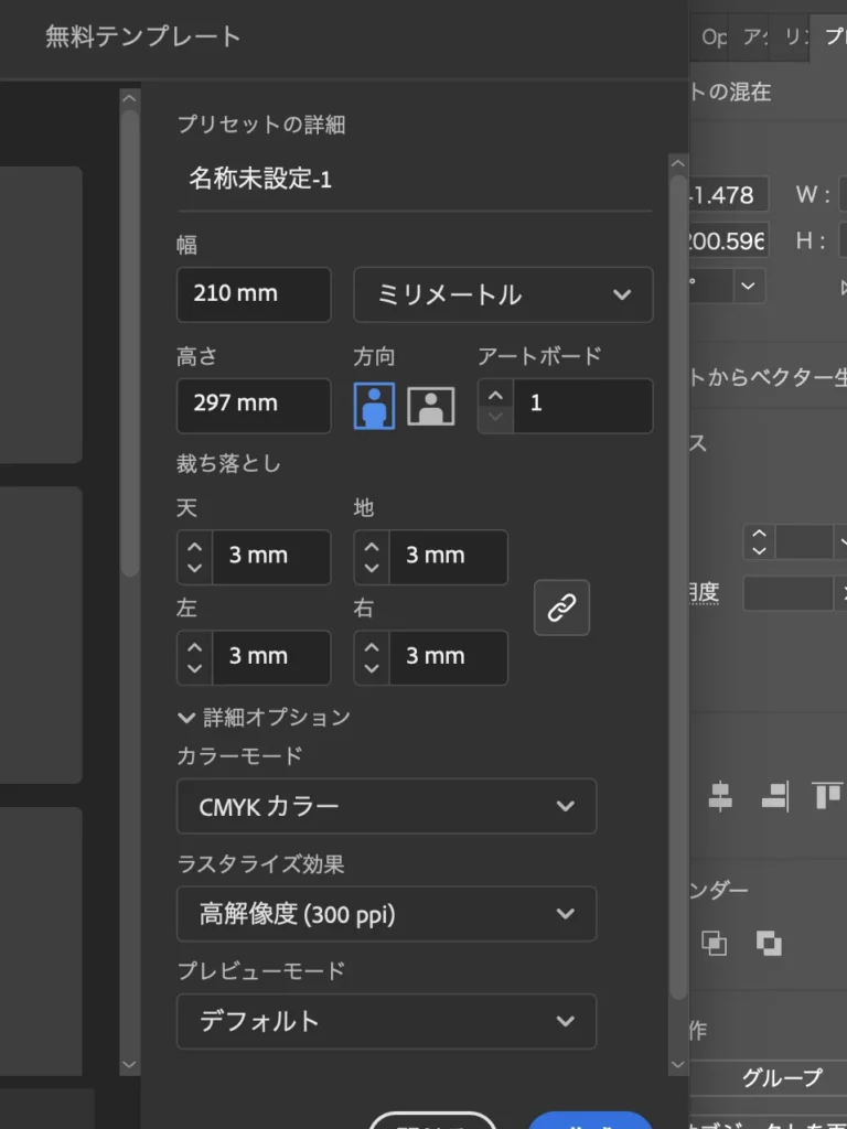 (↓新規デザインを作る際に裁ち落とし設定するところがあるのですが、ここで設定した人は上記の方法でOKです!)