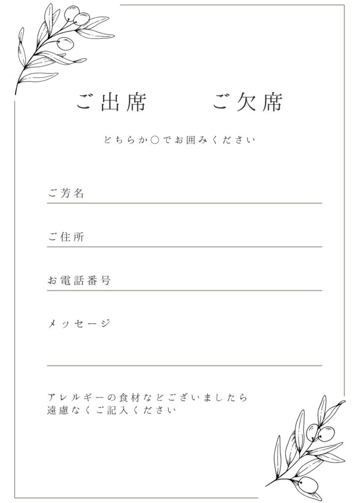 実際のご招待状・返信用ハガキ