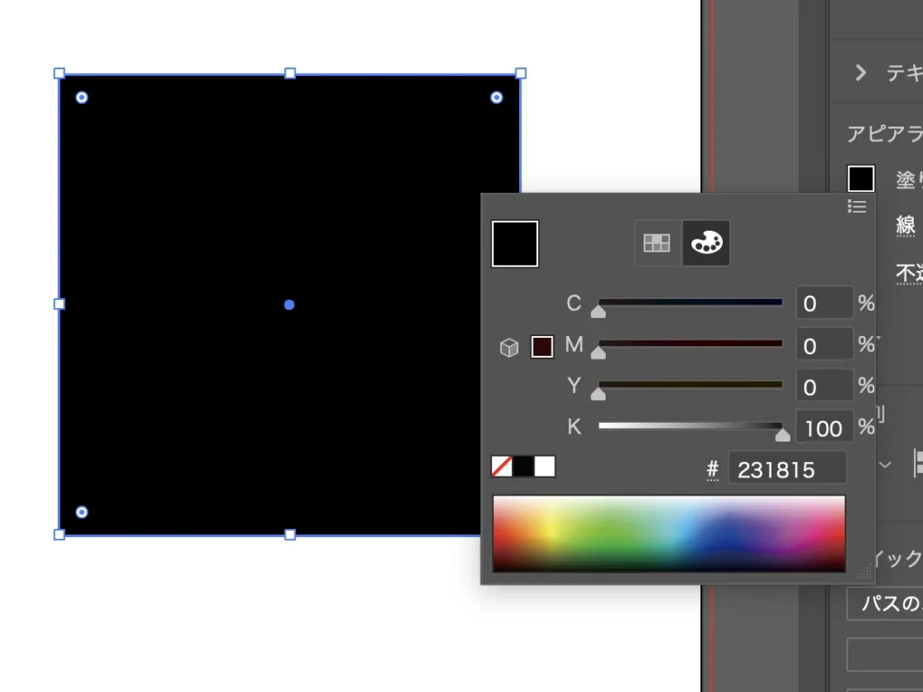 Illustratorで印刷用の画像を作っていた時、ふとカラーパネルを見るとK=100%になっていることに気がつきました。