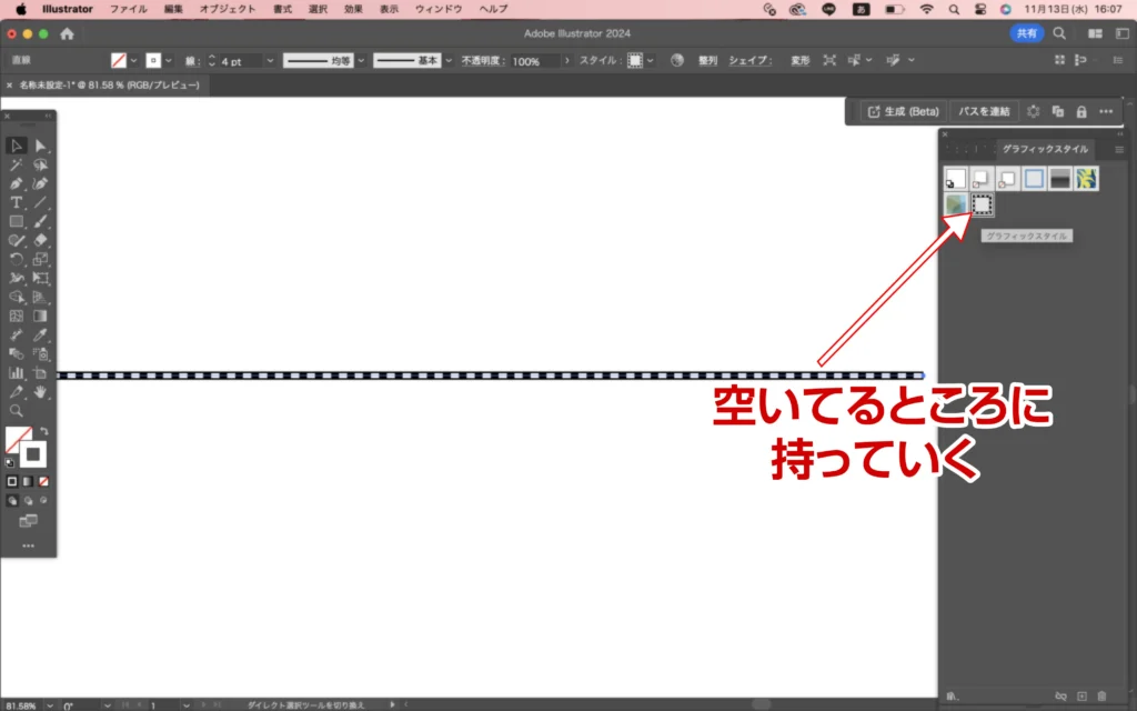 線路をドラッグアンドドロップでグラフィックスタイルのパネルへ持っていきます。