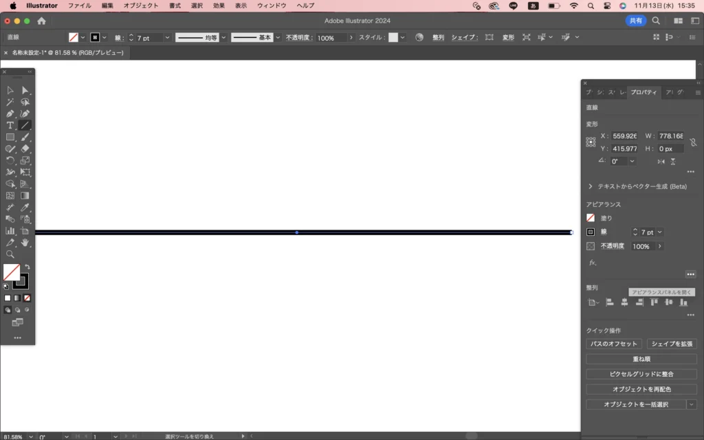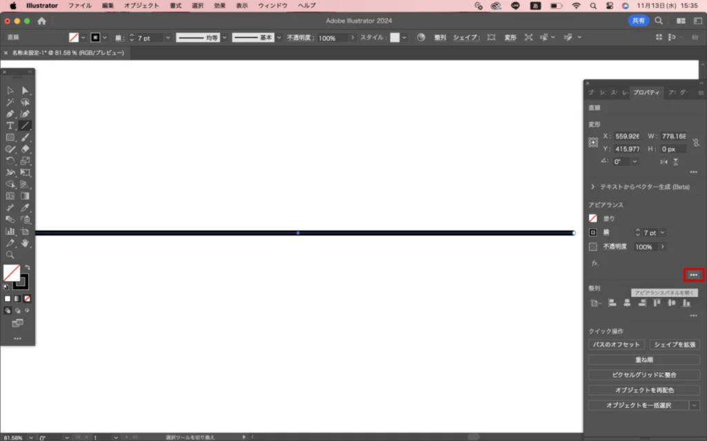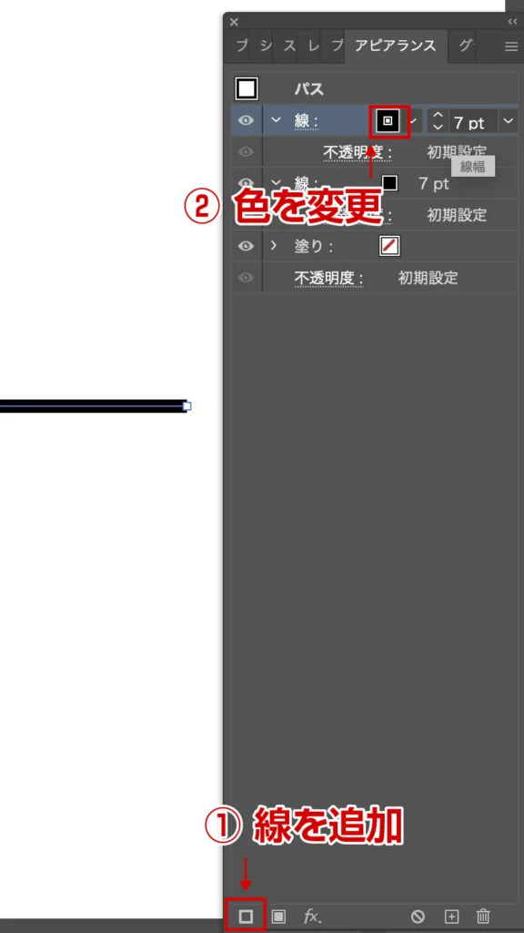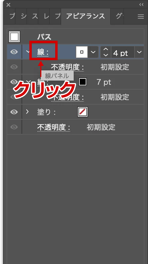 右側のアピアランスパネル下部にある「」の部分をクリック!