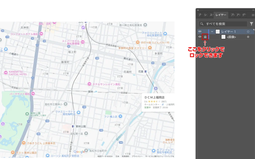 配置した画像が下書きの元になるので、動いてしまわないようにロックします。