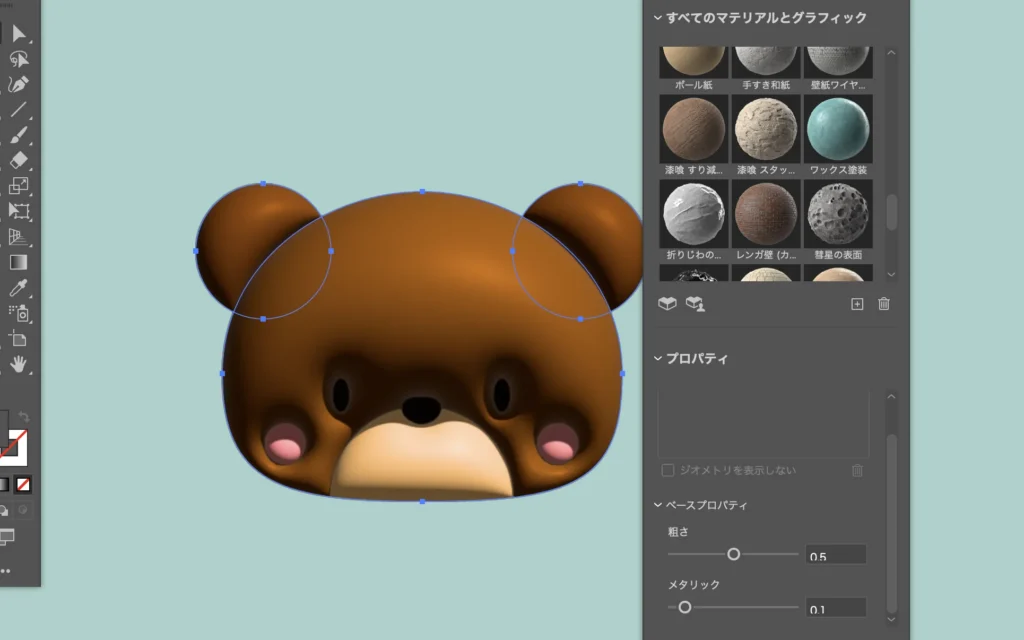 「粗さ」は数値が大きいほどマットに、「メタリック」は数値が大きいほどメタリックになります。