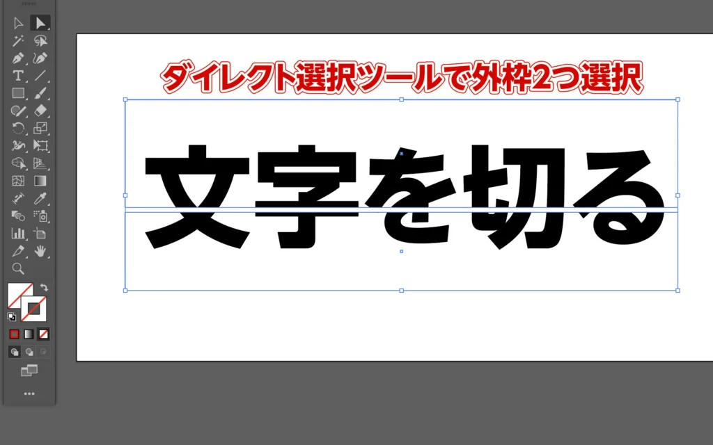 ダイレクト選択ツールで下の枠(文字は選択せず、枠だけ!)を選択。