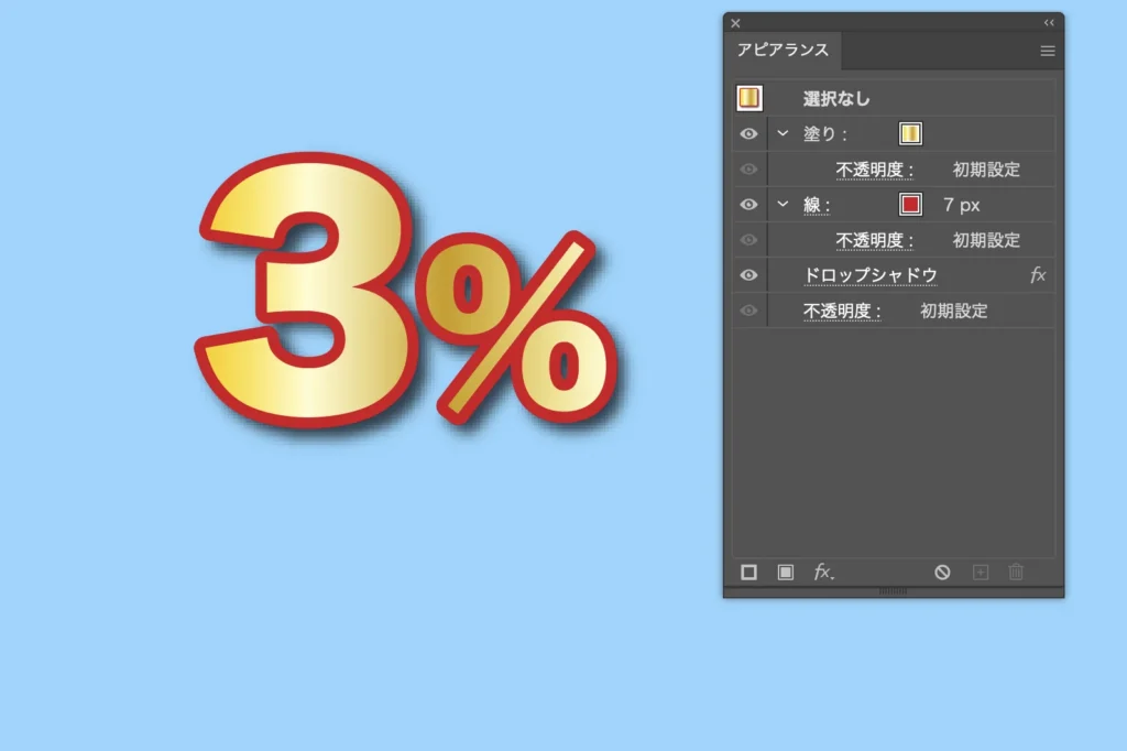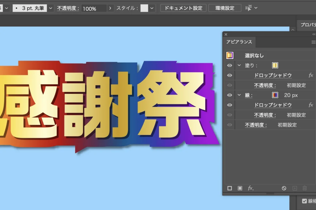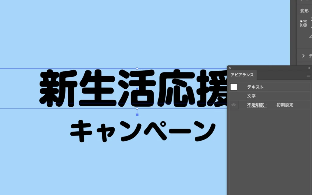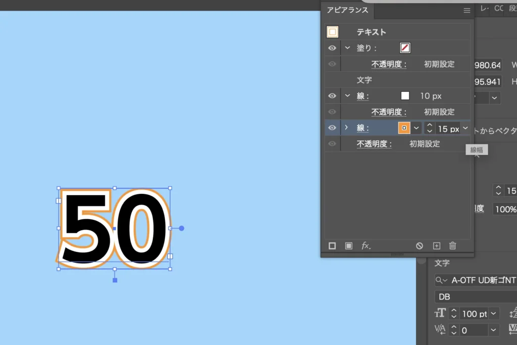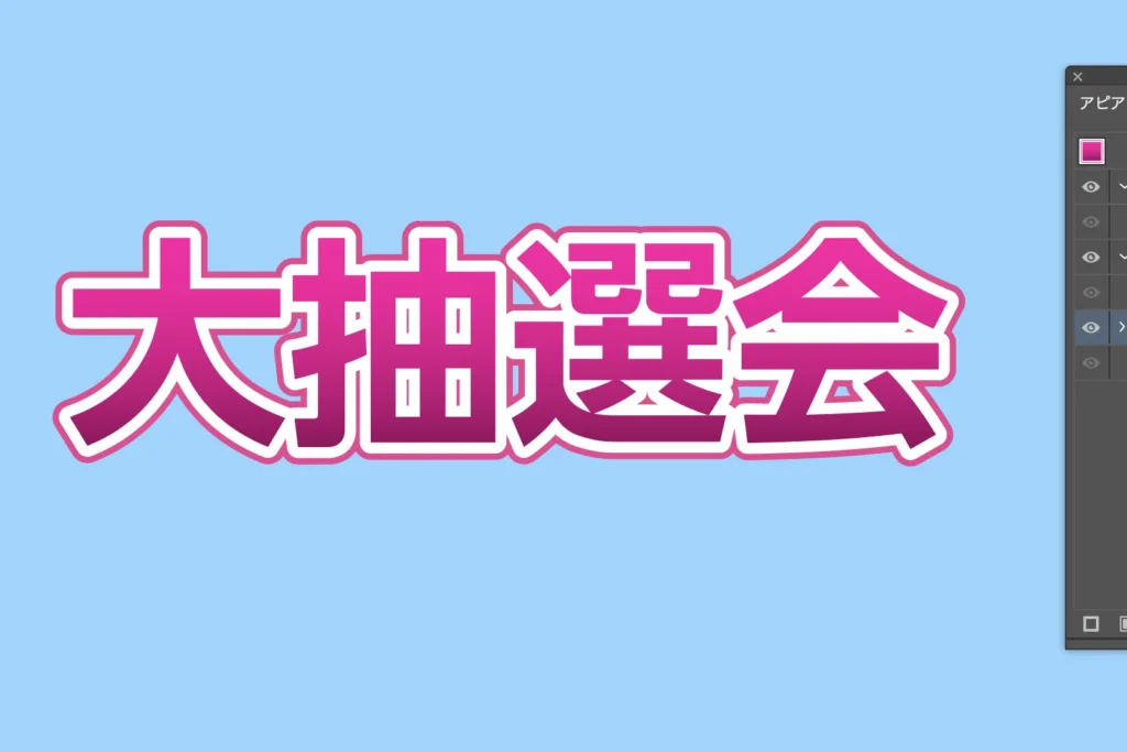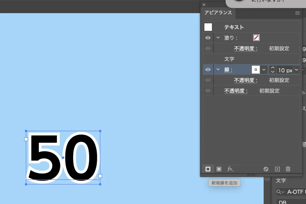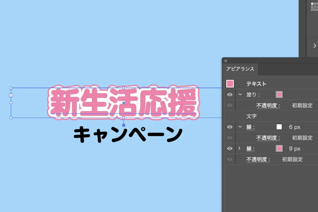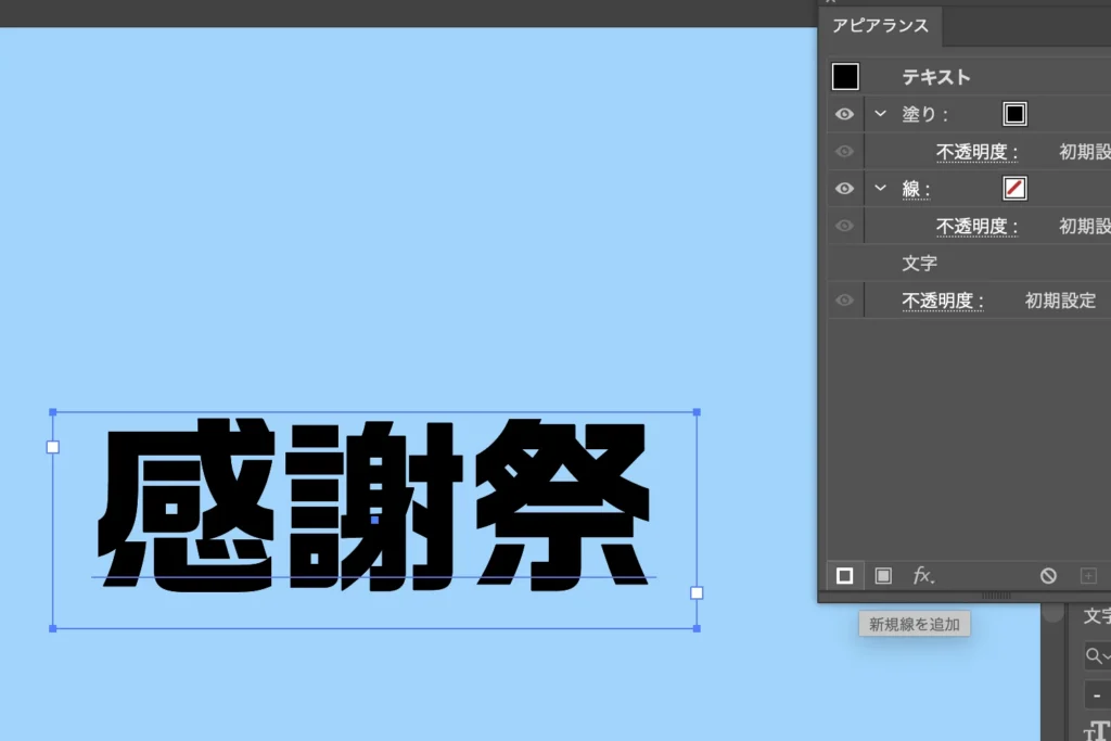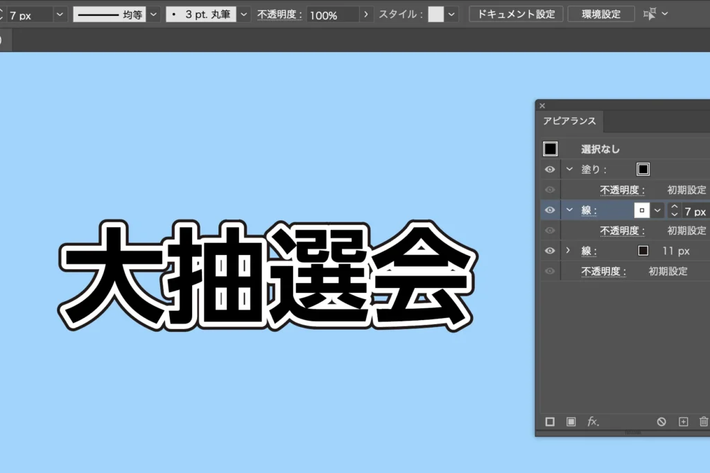 文字を入力、アピアランスパネルを開いてフチをつける(フチの付け方は2.フチ文字で紹介しています)。