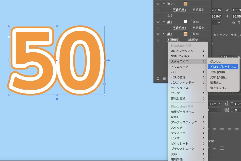 スタイライズ→ドロップシャドウで影をつけると少し立体に!