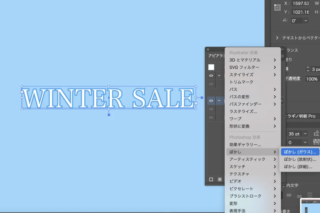 アピアランスパネルの下の方にある【fx】新規効果を追加を選択。
