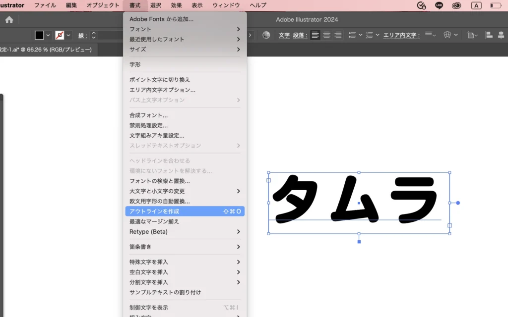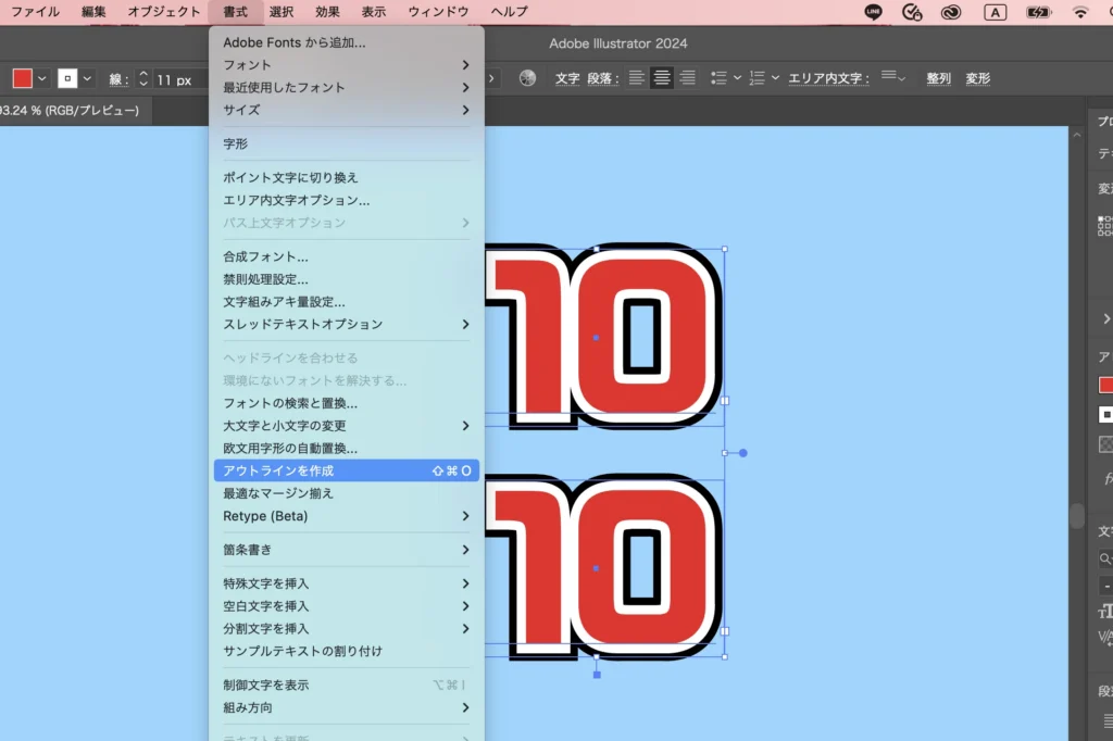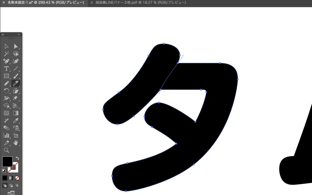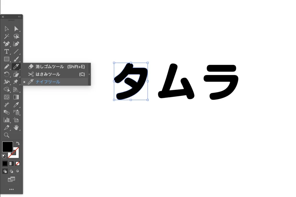 次の文字を編集するときは一旦ナイフツールから選択ツールに戻して、編集したい文字をクリックしてから