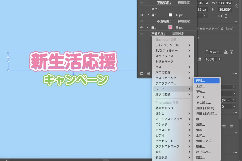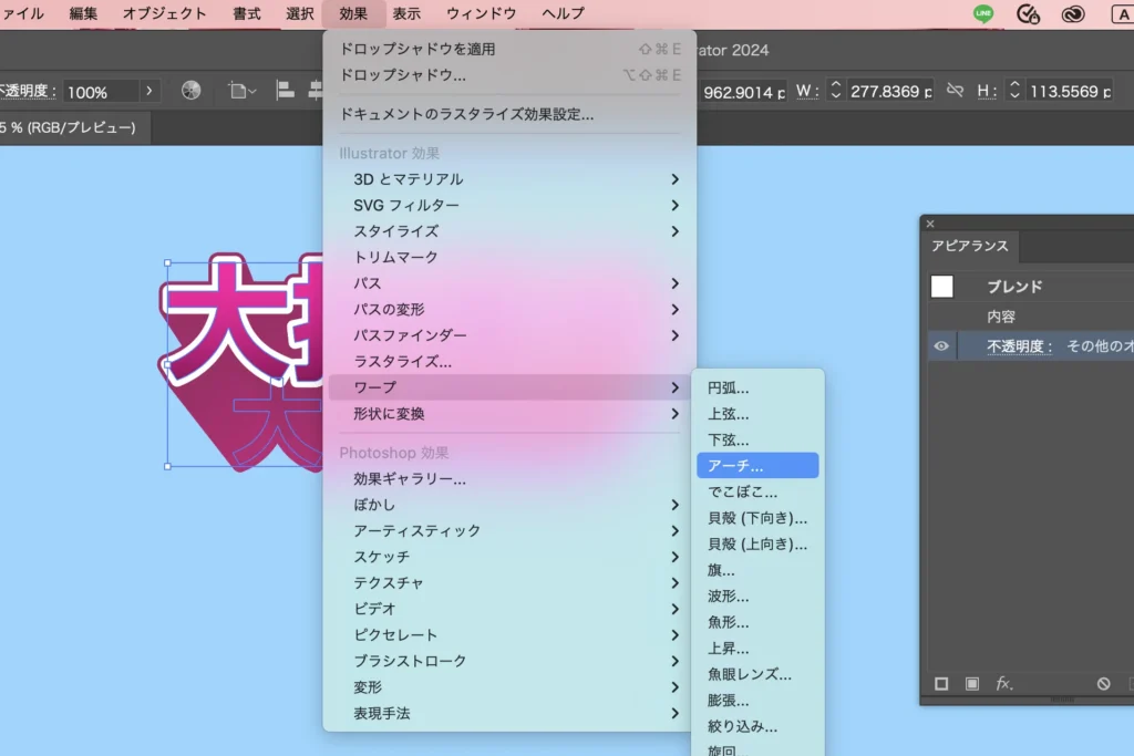 アピアランスパネルの下にある【fx】新規効果を追加を選択。