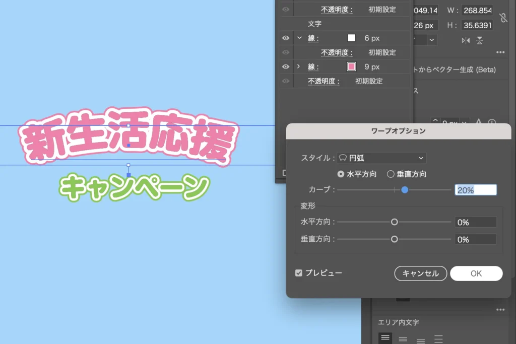 カーブ:20%にしていますが、お好みで変えてみてください。完成!