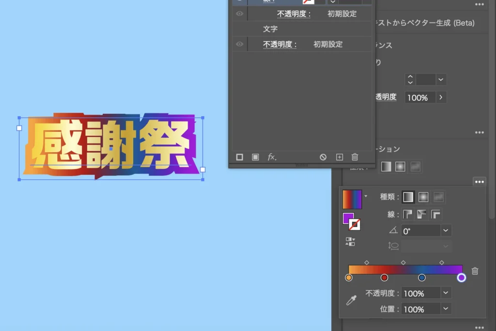 グラデーション下の丸をダブルクリックすると色が変えられます。