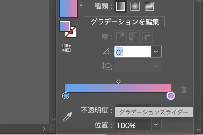 右側のグラデーションのところから【グラデーションを編集】をクリック
