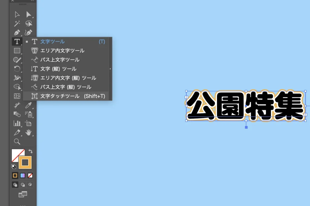 文字ツールを長押しすると出てくる【文字タッチツール】を選択