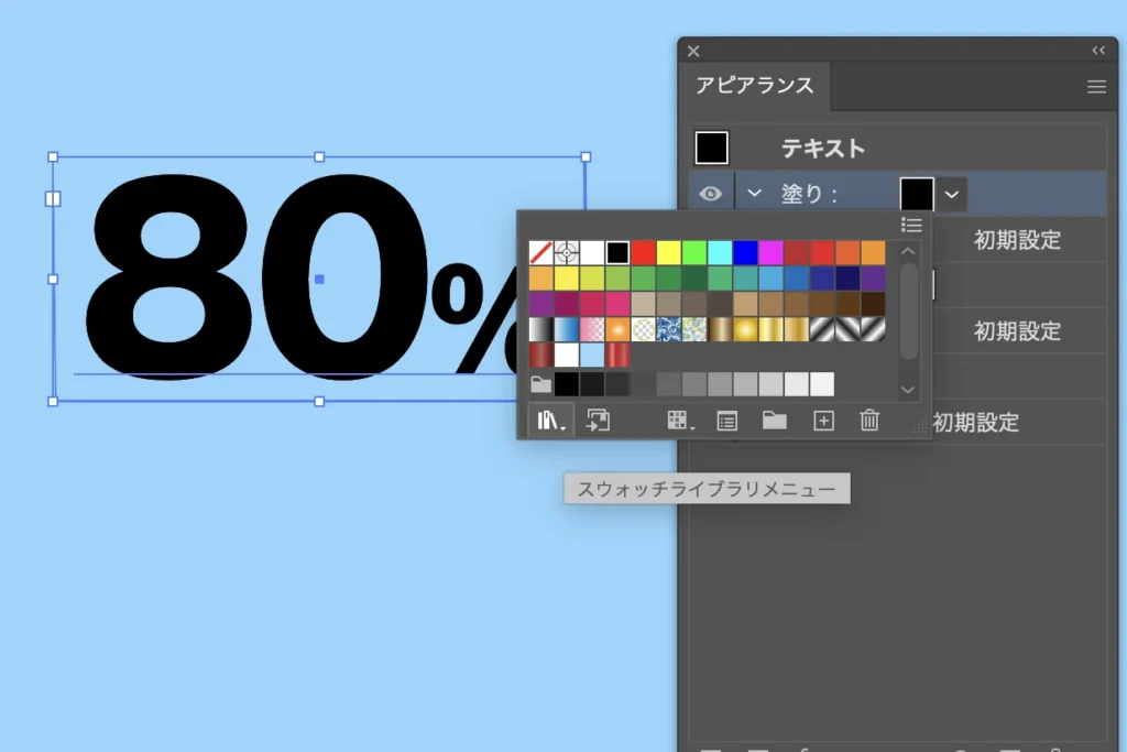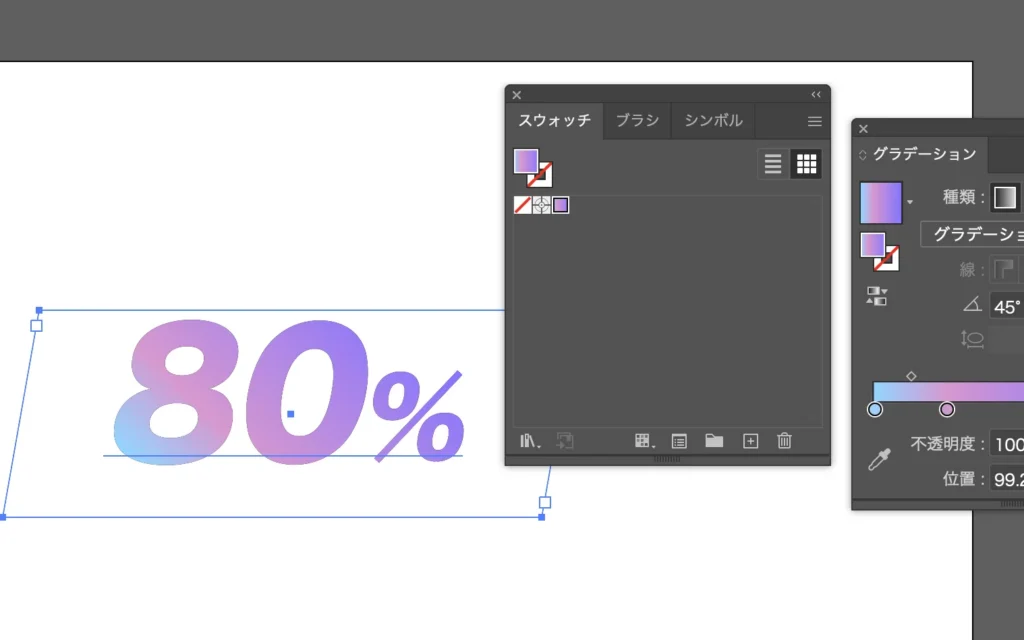 スウォッチパネルが出てきます。左上が今適用されているグラデーション