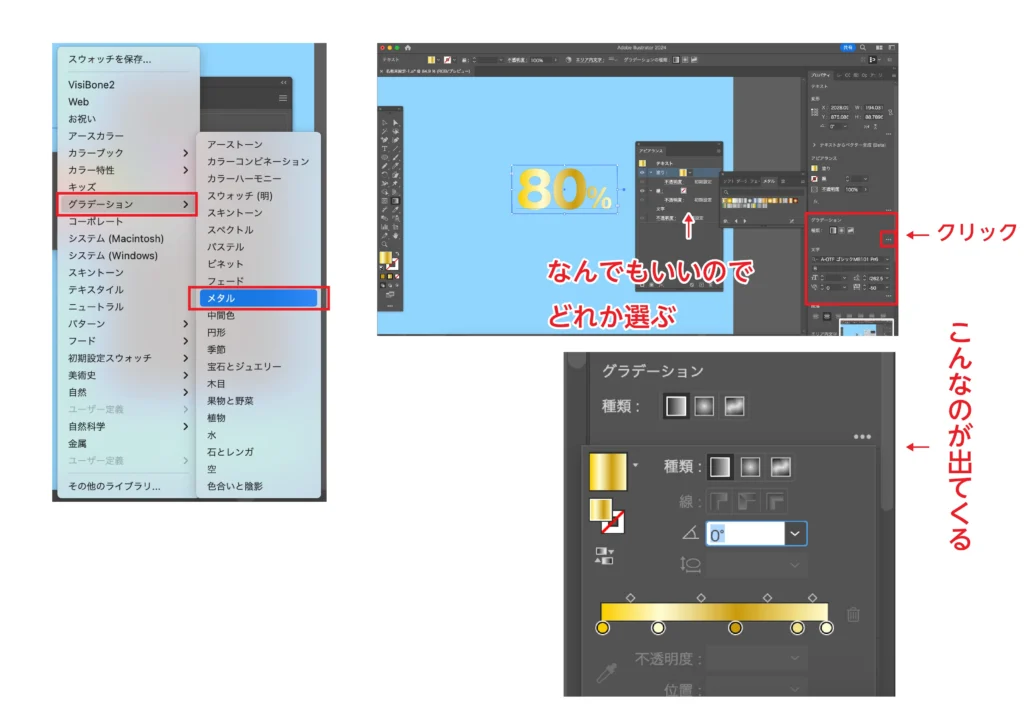 グラデーションからメタルを開き、適当に選択。なんでもOK!(メタルじゃなくてもOK。笑)