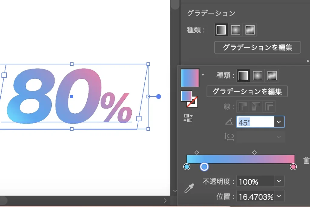 色数を減らして、可愛い色を選べば…完成!(角度を45°にするとグラデーションが斜めになり、動きが出て可愛いですね!)