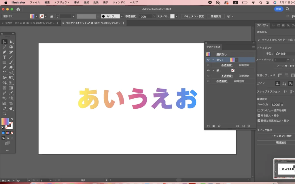 もうグラデーションがスウォッチにある前提で作りましたが、
