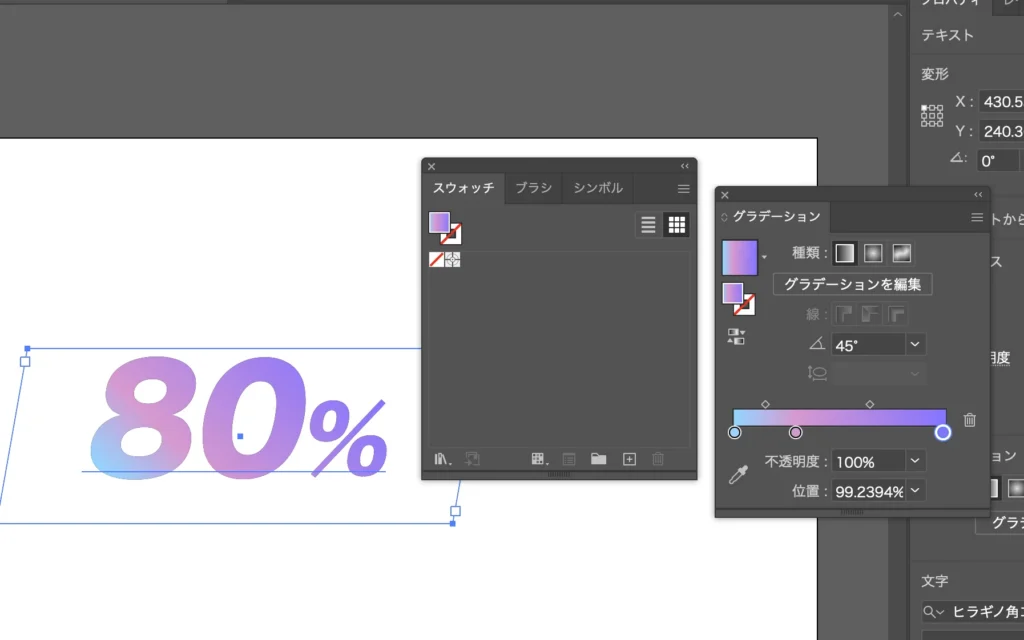 (普通の文字色なら【塗り】パネルから変更できるのですが、グラデーションはそれでは反映されないのです。)