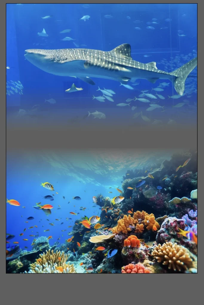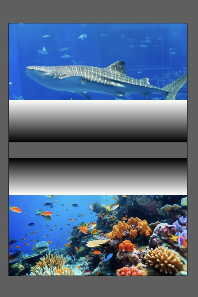 グラデーションの長方形をコピー&ペースト、上下をひっくり返して下の画像に重ねてます。↓