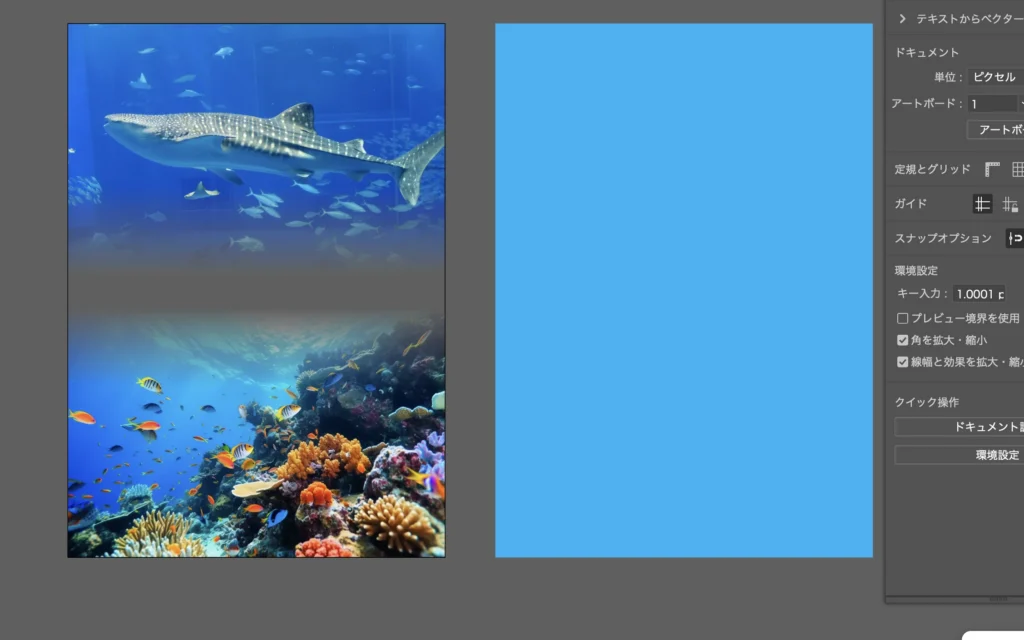 グレーだった部分はアートボードが白いので白っぽく見えていますが、半透明になっています。