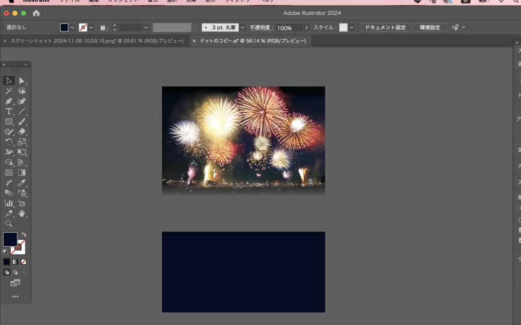 長方形を作って、花火の写真の下の方の色をスポイトで取ります