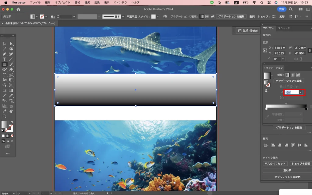 グラデーションの角度を変えます。(-90°)