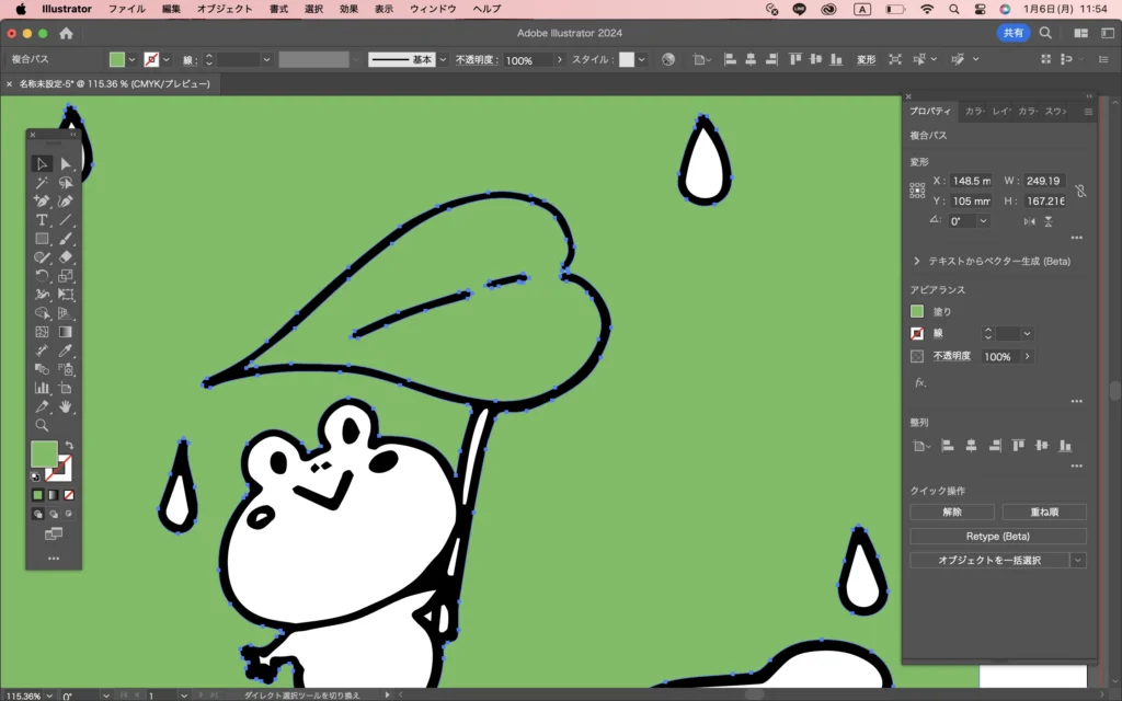 【Illustrator】手描きのイラストに色塗りする方法