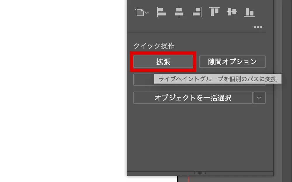 ( 無ければ画面上部の「オブジェクト」→「ライブペイント」「隙間オプション」