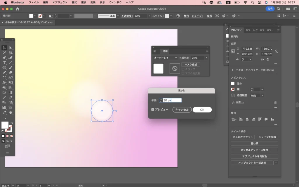 【Illustrator】オーバーレイを使ってみたい!第1弾 ~ホワホワ背景~