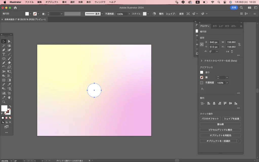 まずは楕円形ツールで白い正円を作ります。
