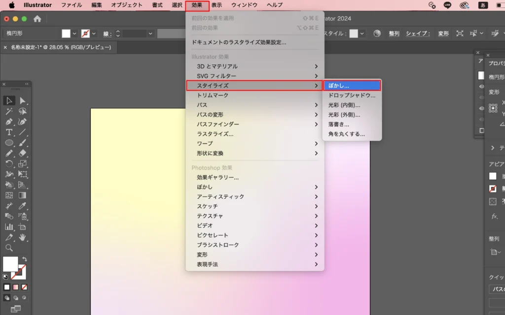 「効果」→「スタイライズ」→「ぼかし」
