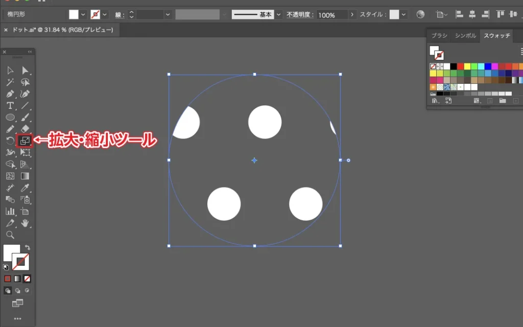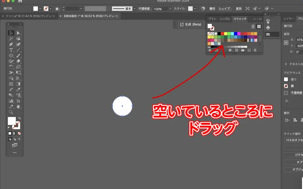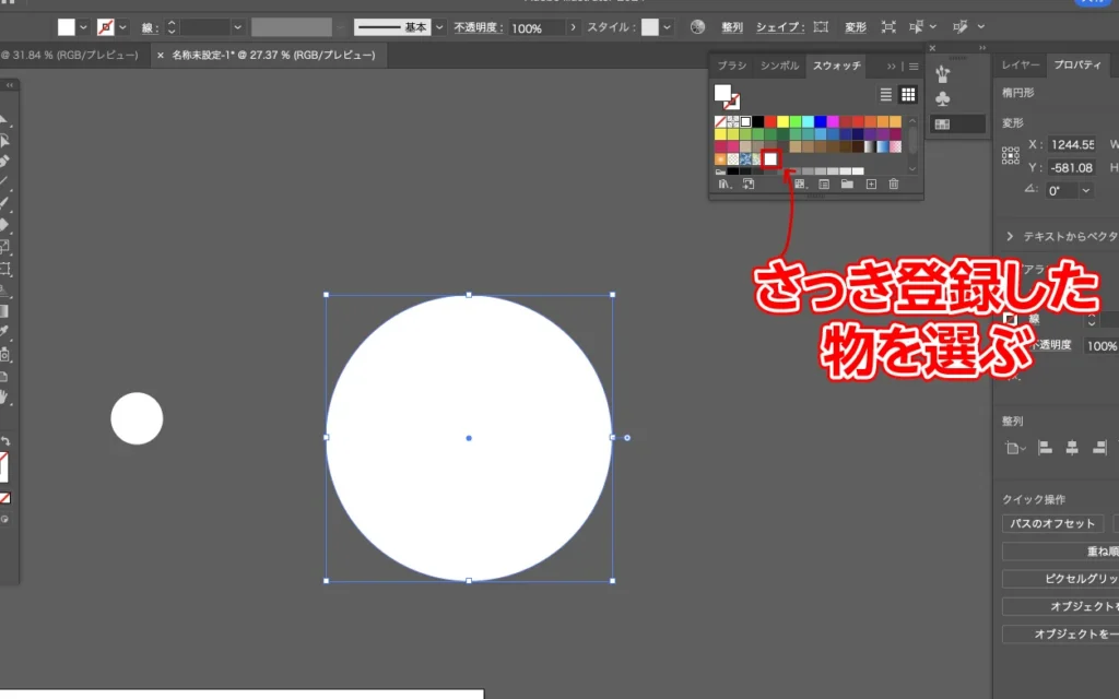 スウォッチパネルの中に、先ほど作った正円をドラッグして登録します。