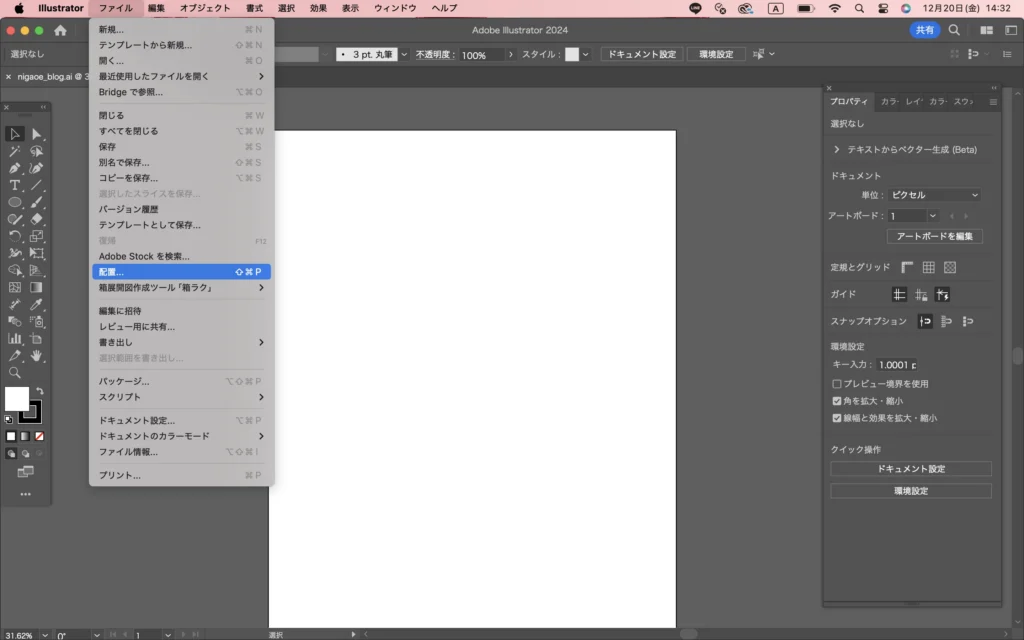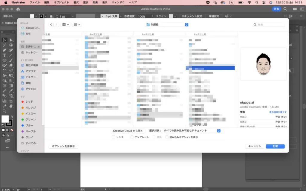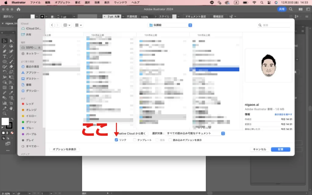 その言葉の通り、aiデータ上に画像を埋め込むのが「埋め込み配置」、