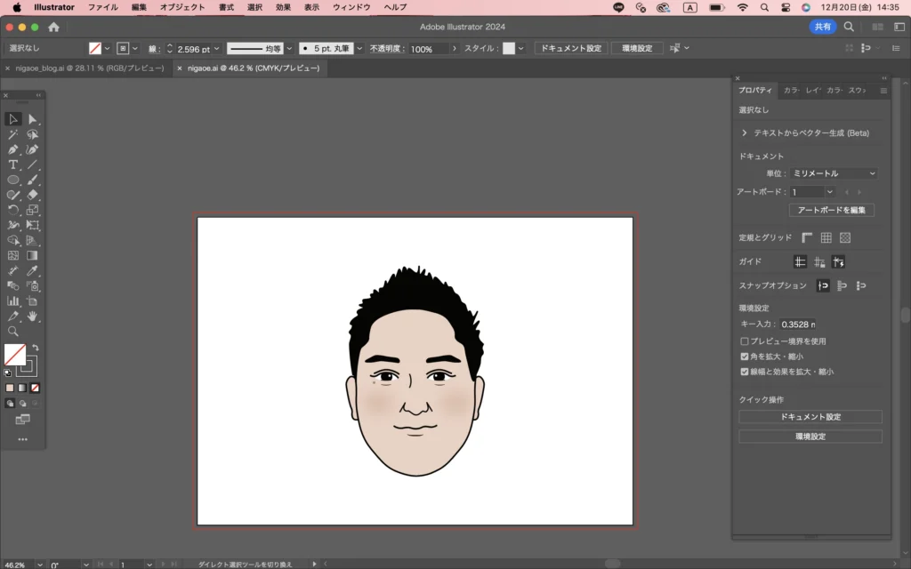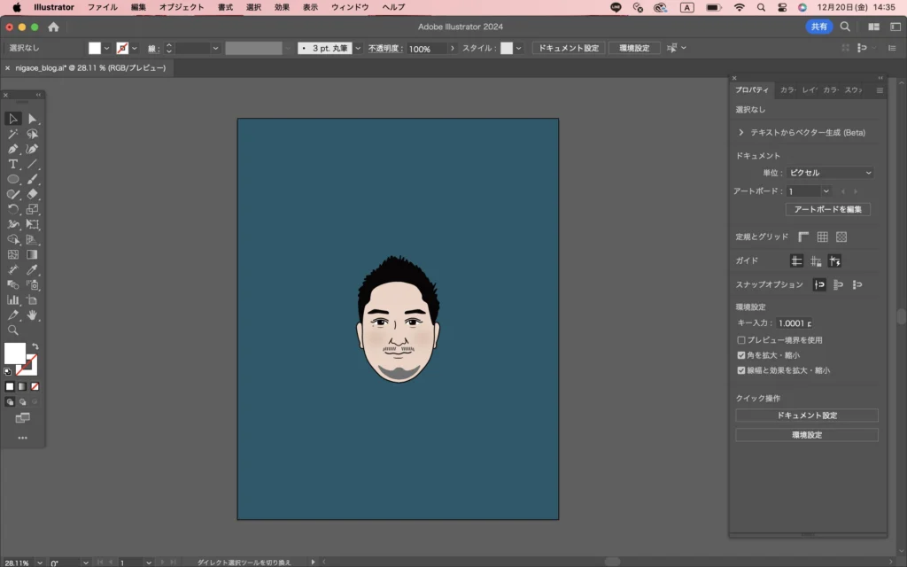 photoACさんでダウンロードした男性の似顔絵を作ってみたので、この似顔絵で試してみたいと思います。
