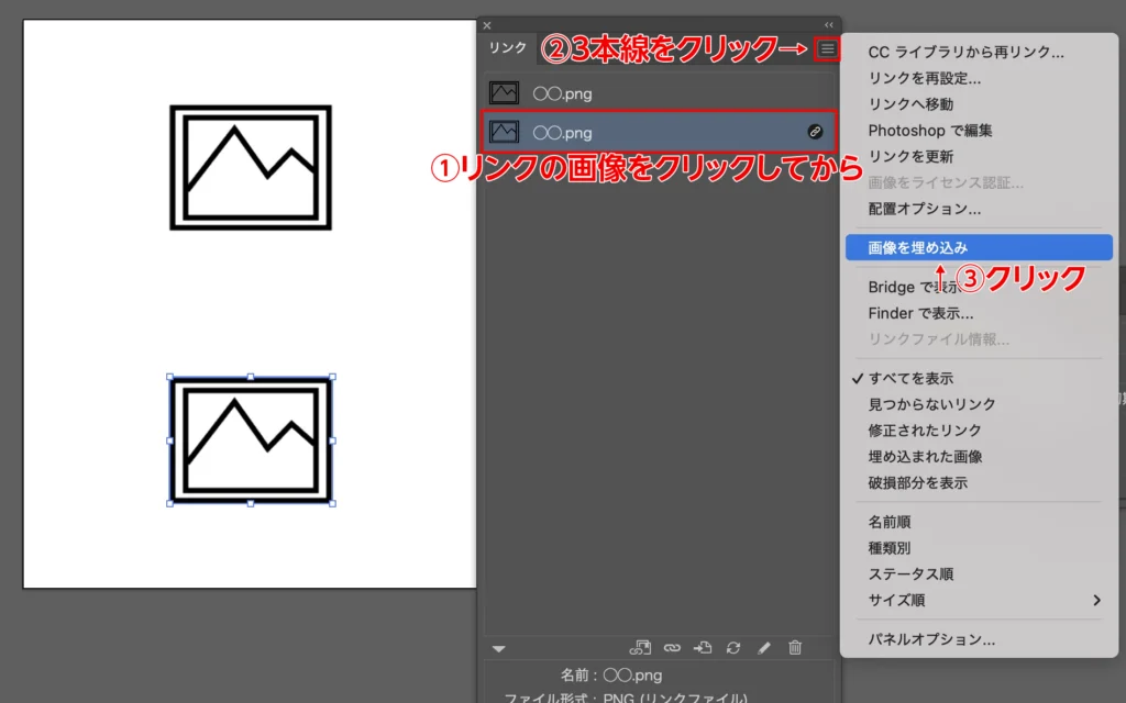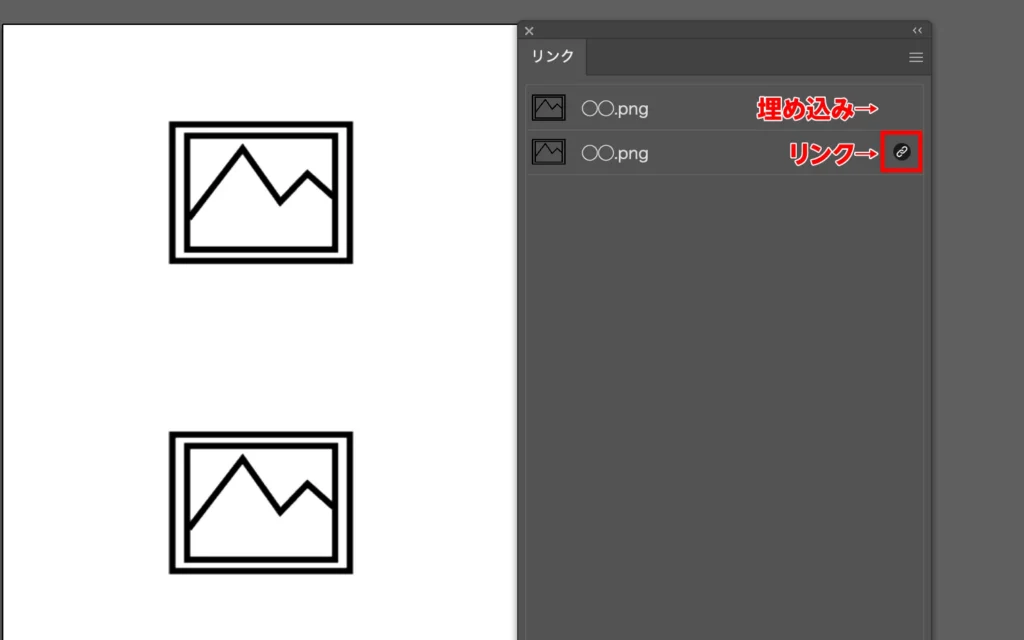 同一フォルダ内にある画像をリンク(紐付け)して表示するのが「リンク配置」です。