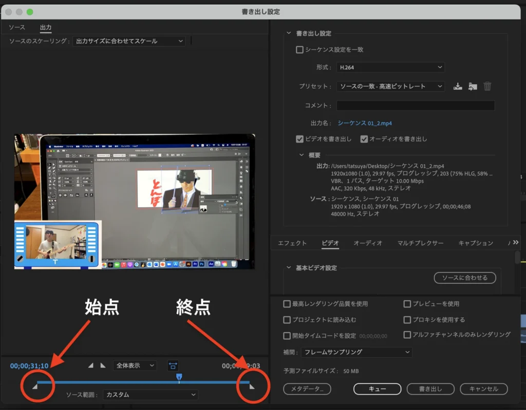 部分的に動画を書き出すことができます!!