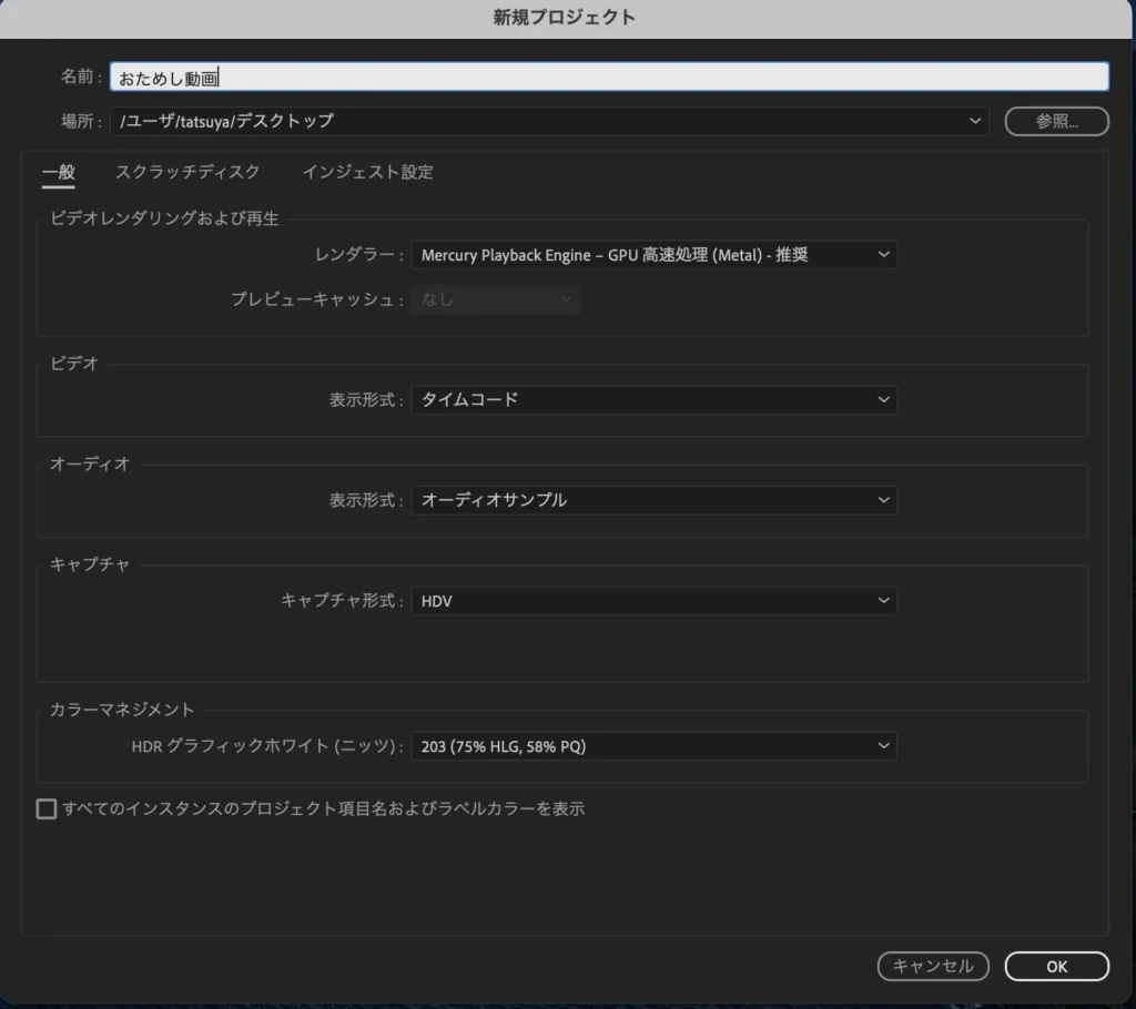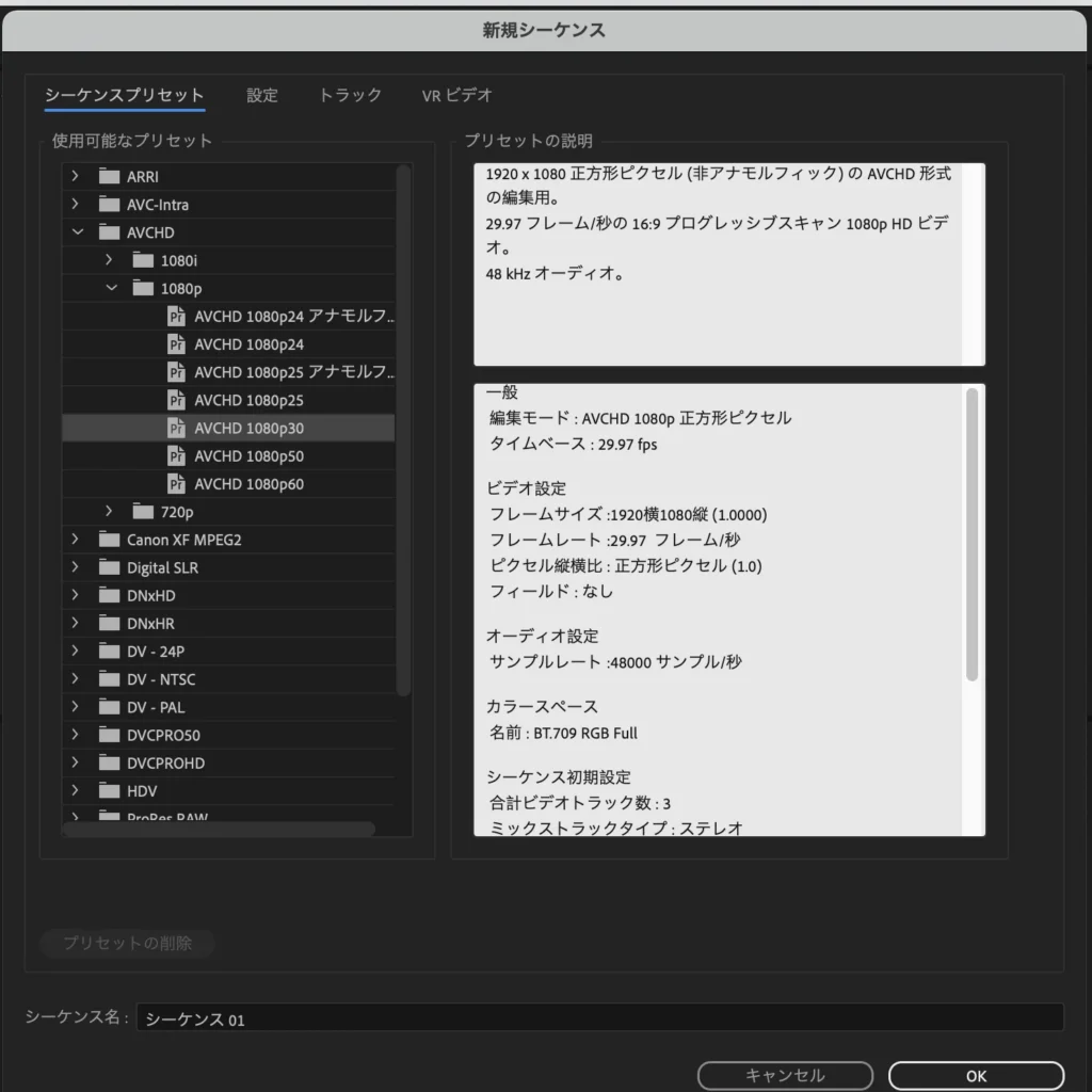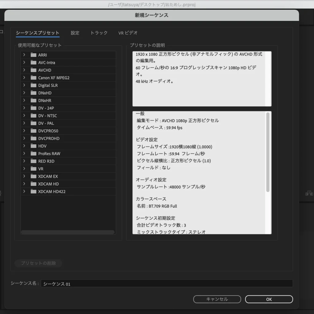 初期設定といっても、Premiere Pro全体の設定ではなく、作る動画ひとつ一つに対してそれに適した環境を設定してやるというものです。
