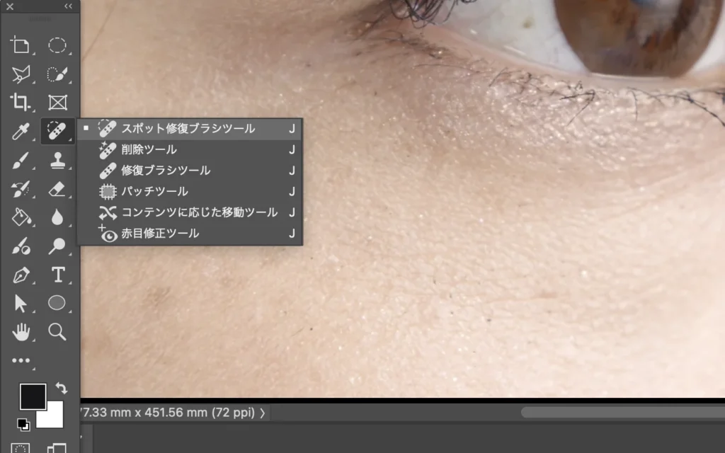 ここで使用するのはスポット修復ブラシツールです。