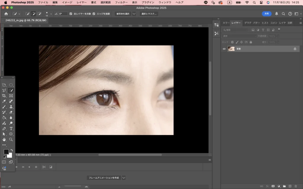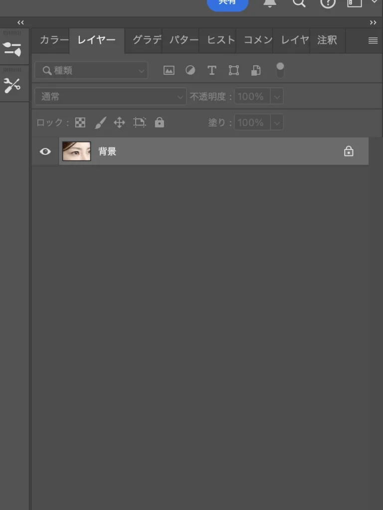 デフォルト(何もしていない状態)では読み込んだ画像が「背景」レイヤーになって鍵がかかっているので、