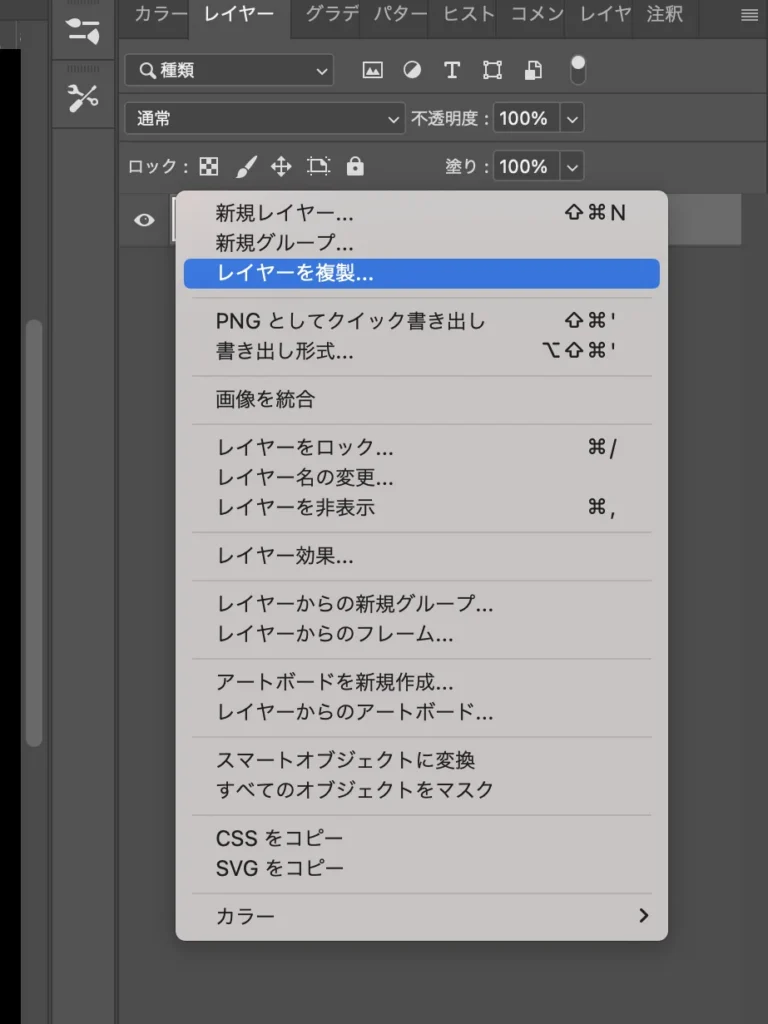 右クリックで「レイヤーを複製」という言葉が出てくるので、選択します。