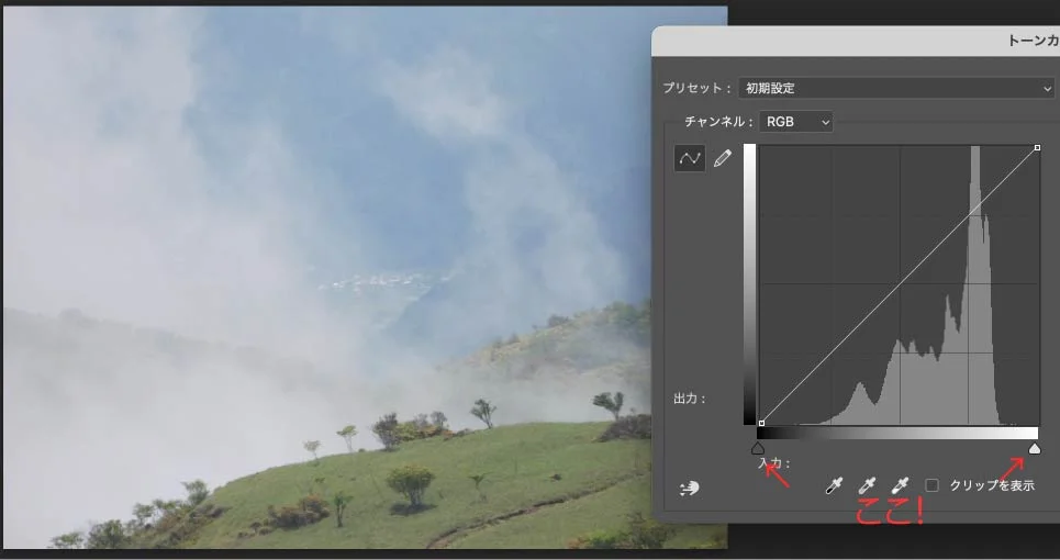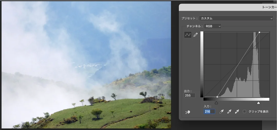 ▼例えば、こんな感じで全体が暗い写真だと左側の暗い部分の山が高くなっています。