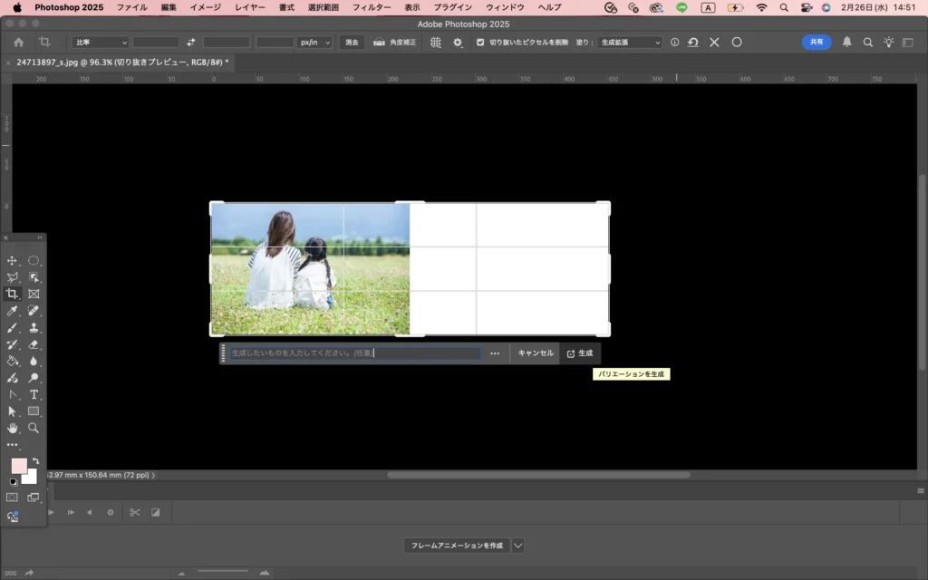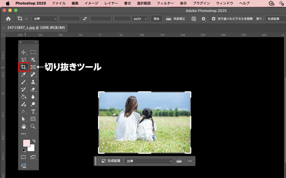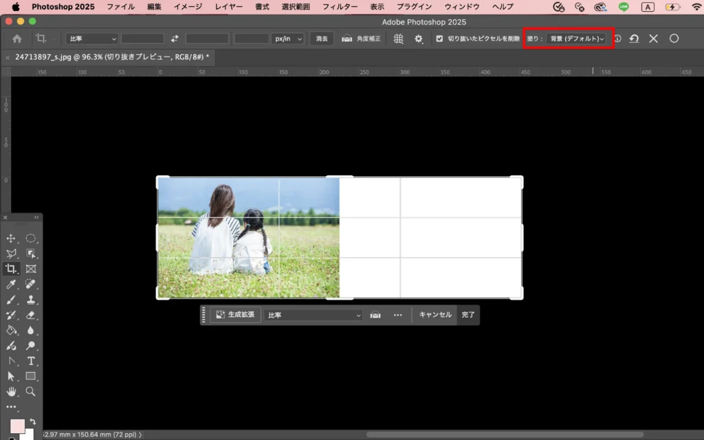 【Photoshop】生成拡張で写真の背景を伸ばす方法