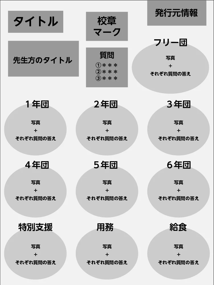 (例 〇〇小学校〇〇月間・〇〇小学校体力通信簿・〇〇小学校の委員会紹介など)